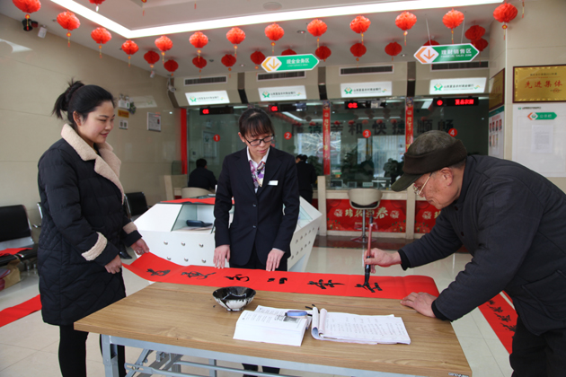 县农商银行为客户写春联